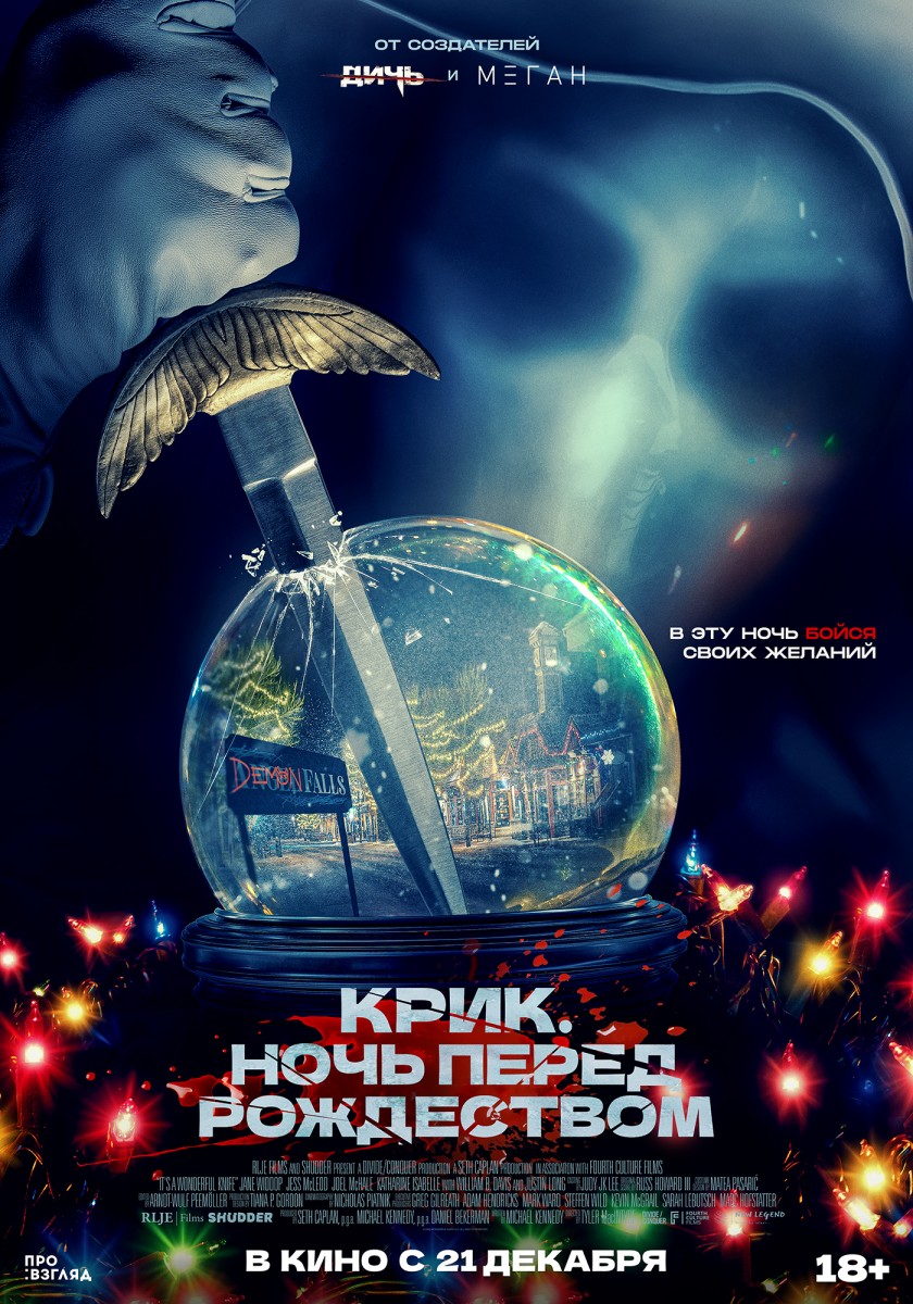 С 21 декабря кинокомпания Про:взгляд выпускает в широкий прокат фильм «Крик. Ночь перед Рождеством» ― американский хоррор, которому суждено стать классикой рождественского кино. Зрителей ждет молодежный слэшер в лучших традициях первого «Крика», в котором есть все, чтобы его полюбили: страшный, но ироничный маньяк, дерзкая главная героиня, зловещая атмосфера, молодежные вечеринки и необычный сюжет с элементами фантастики.
