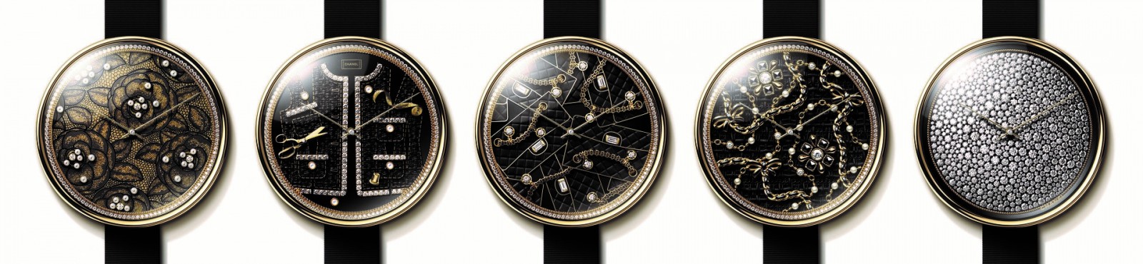 Часы получили название Mademoiselle Privé Pique-Aiguilles. В коллекции — пять моделей с черным матовым браслетом, застежкой из драгоценных камней и разным дизайном циферблатов. Также интересно, что каждая модель выпущена лимитированным тиражом в 20 экземпляров.