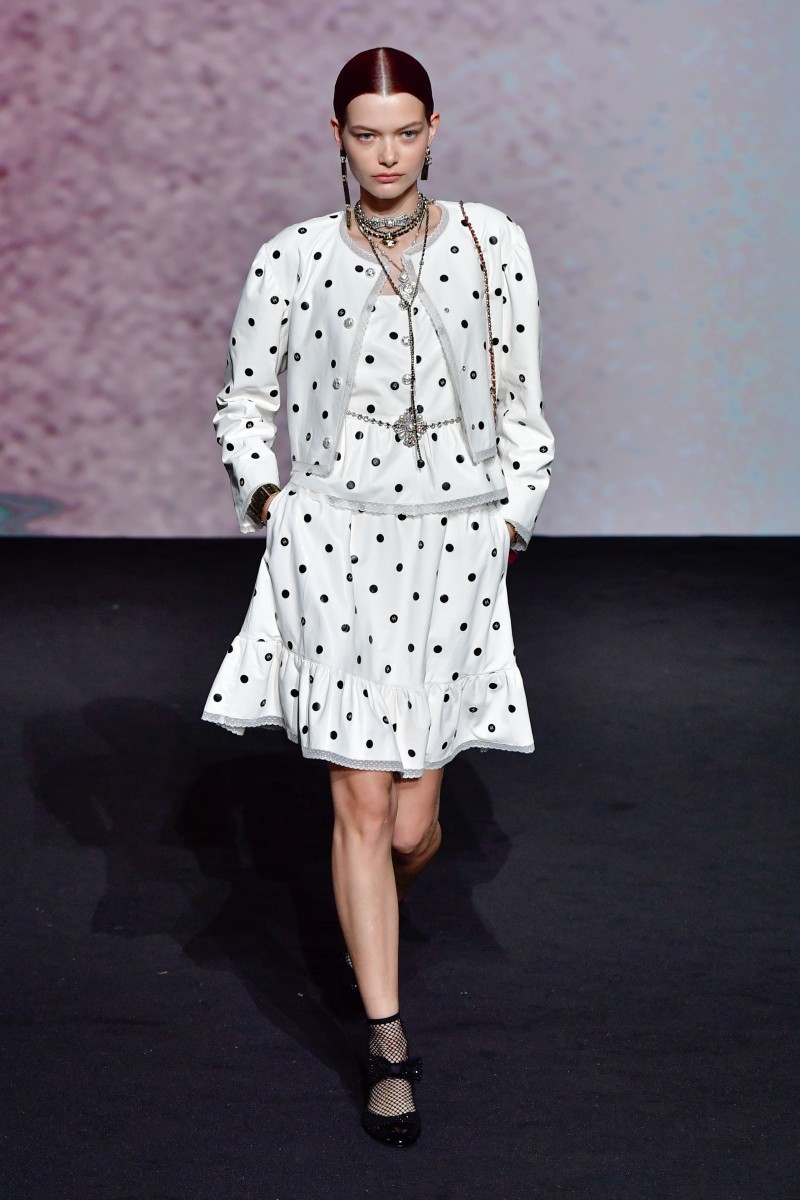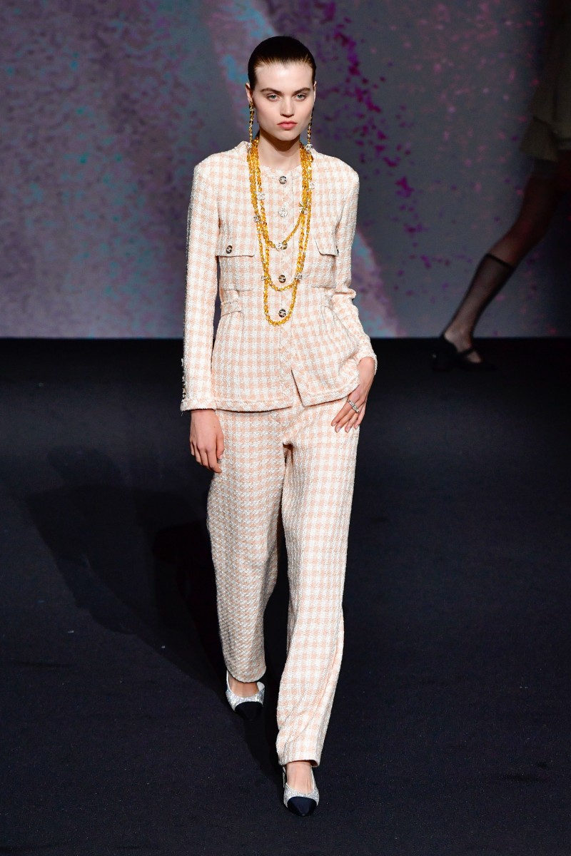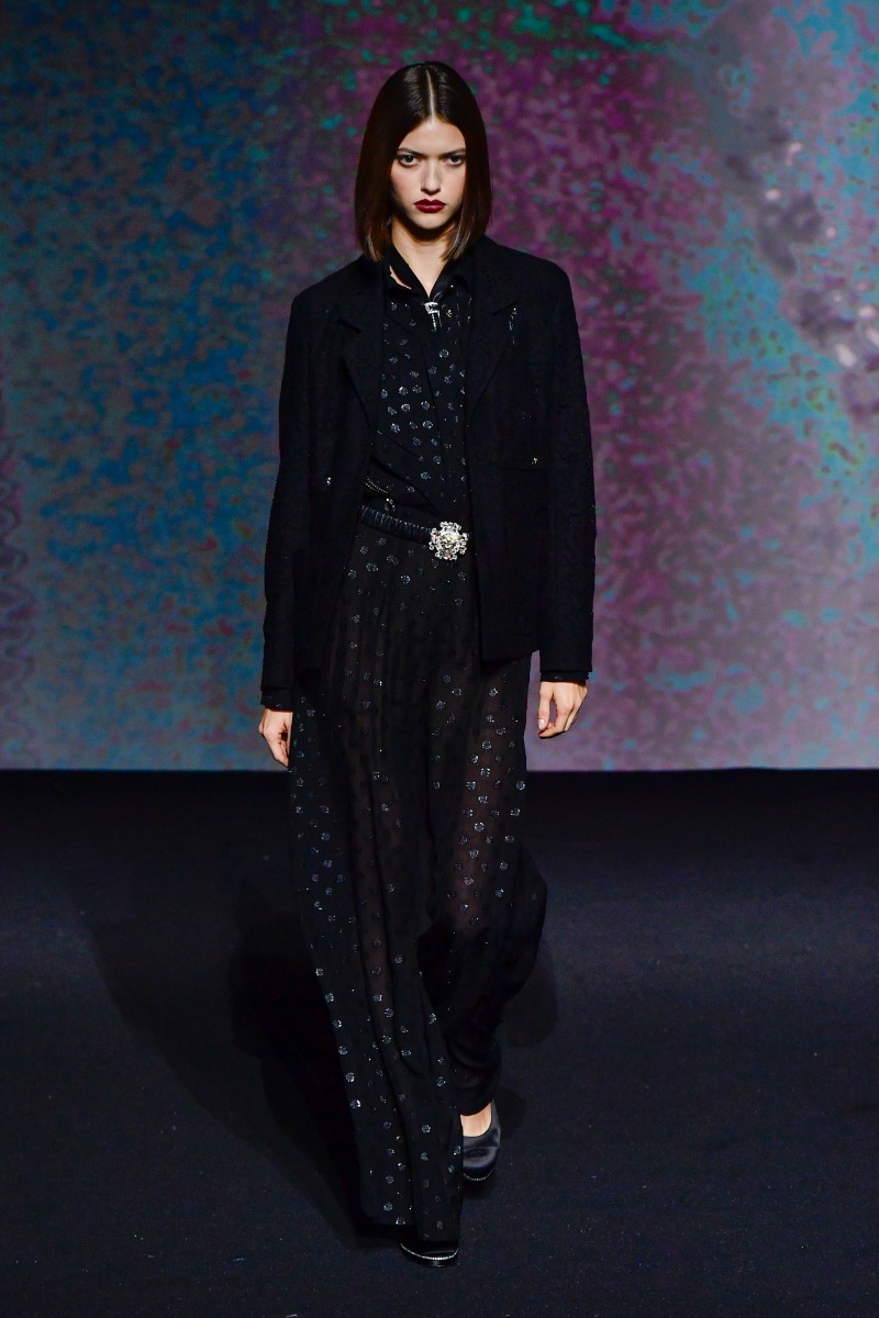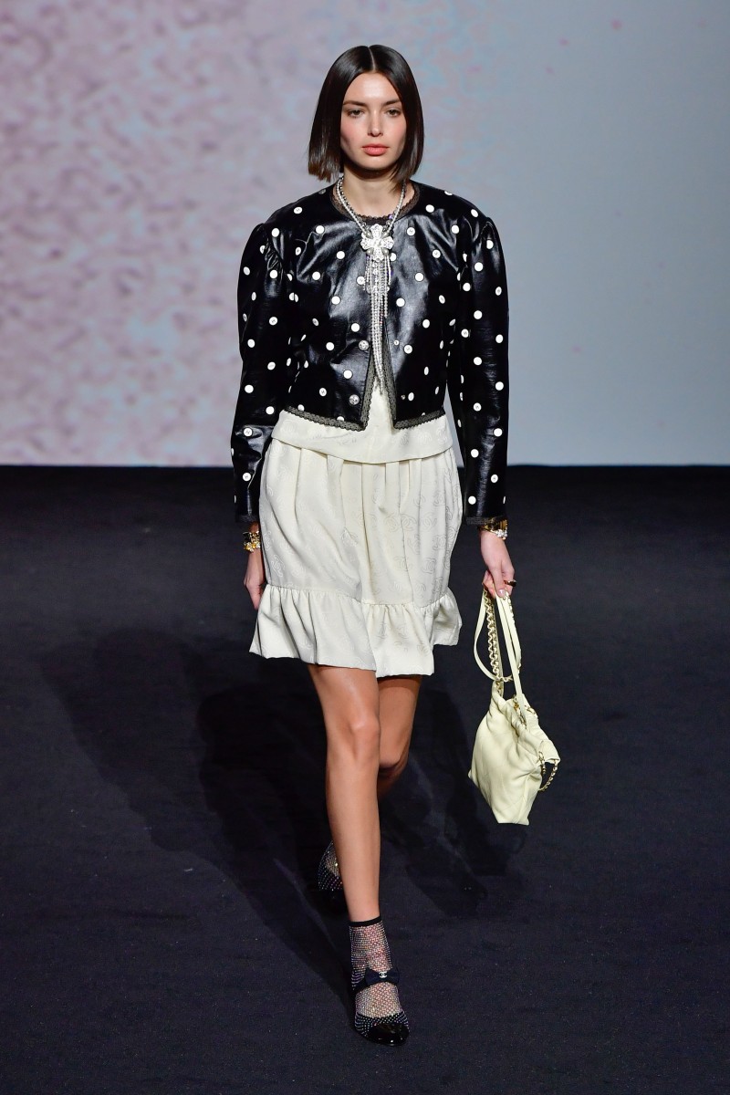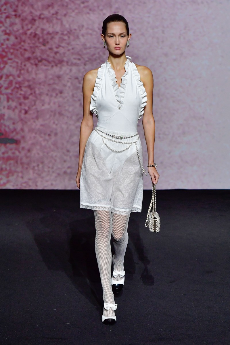 В Париже прошел показ Chanel сезона весна-лето 2023. И он запомнился сразу несколькими моментами. Первое — почти исключительная черно-белая цветовая гамма коллекции, лишь изредка разбавленная главными оттенками сезона — розовым и сиреневым. И это понятно: креативный директор модного дома Виржини Виар вдохновлялась черно-белым кино, а за основу взяла фильм «В прошлом году в Мариенбаде», снятый Аленом Рене в 1961 году.