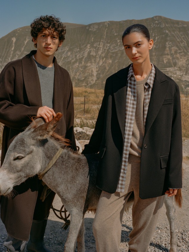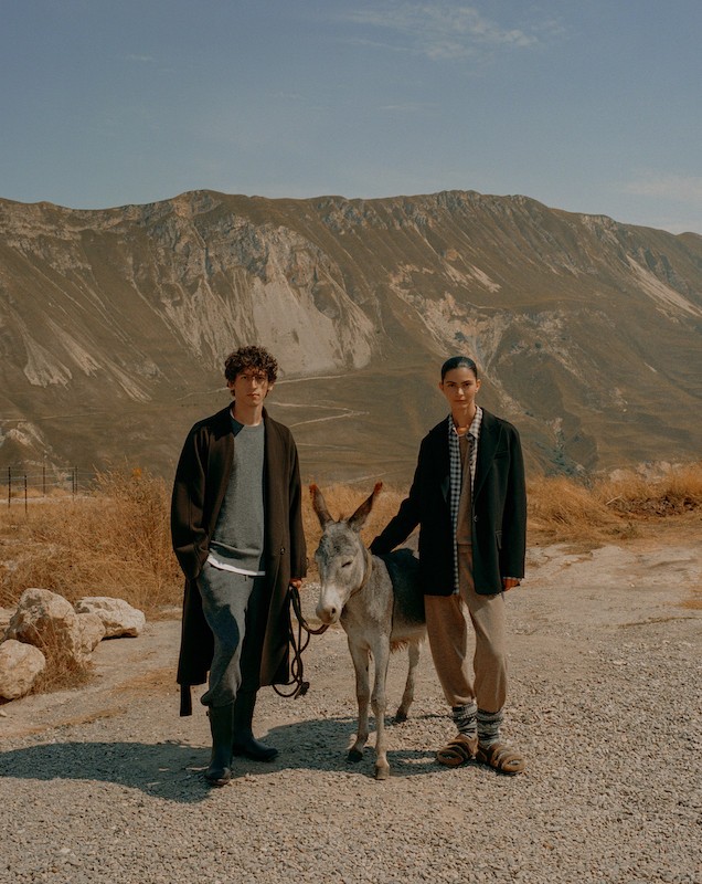 Кампейн сняли на природе на фоне гор. И тоже не обошлось без животных — на некоторых снимках с моделями позирует осел.