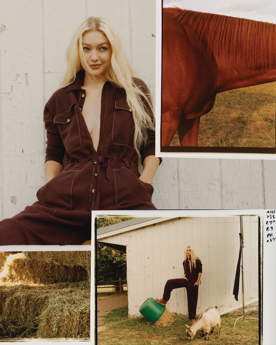 Интересно, что на создание коллекции Джиджи вдохновила ферма ее семьи, и там же прошла съемка рекламной кампании. На снимках Хадид позирует на сене, в обнимку с лошадью, рядом с козой. И все выглядит настолько гармонично, что, глядя на кампейн, тоже хочется одеться в самые уютные вещи и выбраться на природу, туда, где тишина и спокойствие.