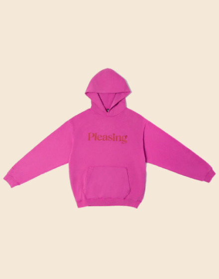 И еще один сюрприз — худи в коричневом или розовом цвете с надписью «Pleasing».
