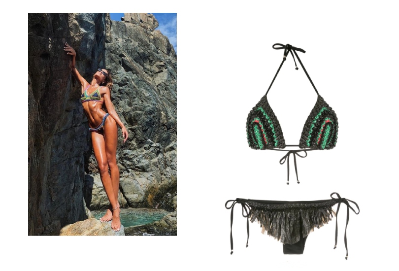 Если хотите повторить образ супермодели Изабель Гулар, выбирайте бикини в технике кроше. Такое есть у бренда Amir Slama, да еще и с бахромой на плавках!