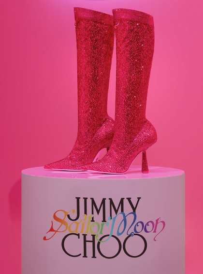 Помните Сейлор Мун? Сложно поверить, но в следующем году аниме-сериалу про девочку-воина — 30 лет! И по этому случаю Jimmy Choo выпустил ограниченную серию сапог цвета фуксии, похожие на те, что носила героиня. Их украшают примерно 19 тыс кристаллов Swarovski, также на моделях можно заметить изображение луны. К луне Сейлор Мун обращалась почти в каждой серии, при этом Jimmy Choo уже использовал этот принт в прошлогодней коллекции в сотрудничестве с Marine Serre (смотрите фото здесь).