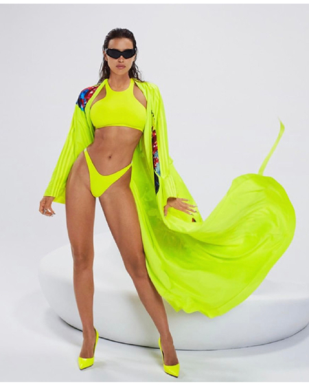 Еще одна фишка — гендерная нейтральность и огромная размерная сетка от XXXS до XXXXL. Не менее интересны и лица кампейна: Бейонсе, кажется, объединила всех. Линейку представили Ирина Шейк, Джоан Смоллс, Харви Ньютон-Хейдон, Адут Акеч, Альва Клэр. Особенно хороша, конечно, наша Ирина. Для рекламы она примерила бикини в ярко-лимонном оттенке и пляжную накидку такого же цвета с принтом. Также в ролике Шейк появляется в голубом костюме.