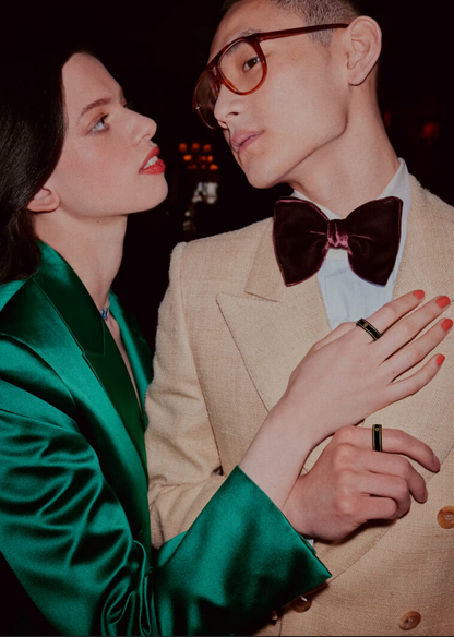 Внешнюю поверхность украшает логотип марки и плетеный узор по краям из 18-каратного желтого золота. Внутренняя поверхность оснащена несколькими датчиками, которые контролируют температуру тела, пульс, частоту дыхания, уровень активности, качество сна и другие параметры. То есть функционал примерно как у фитнес-часов. Все данные, которые собирает Oura, отправляются в специальное приложение, где их можно изучать и анализировать. Помимо этого, программа включает в себя медитации, работу с дыханием и другими курсами для улучшения качества жизни. В набор также входит черная зарядная док-станция, украшенная монограммой Gucci.