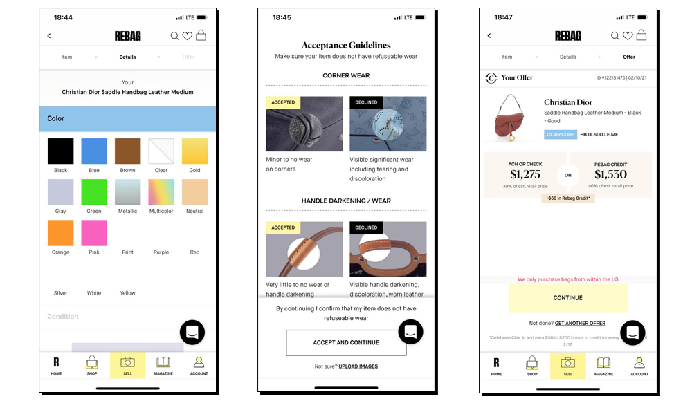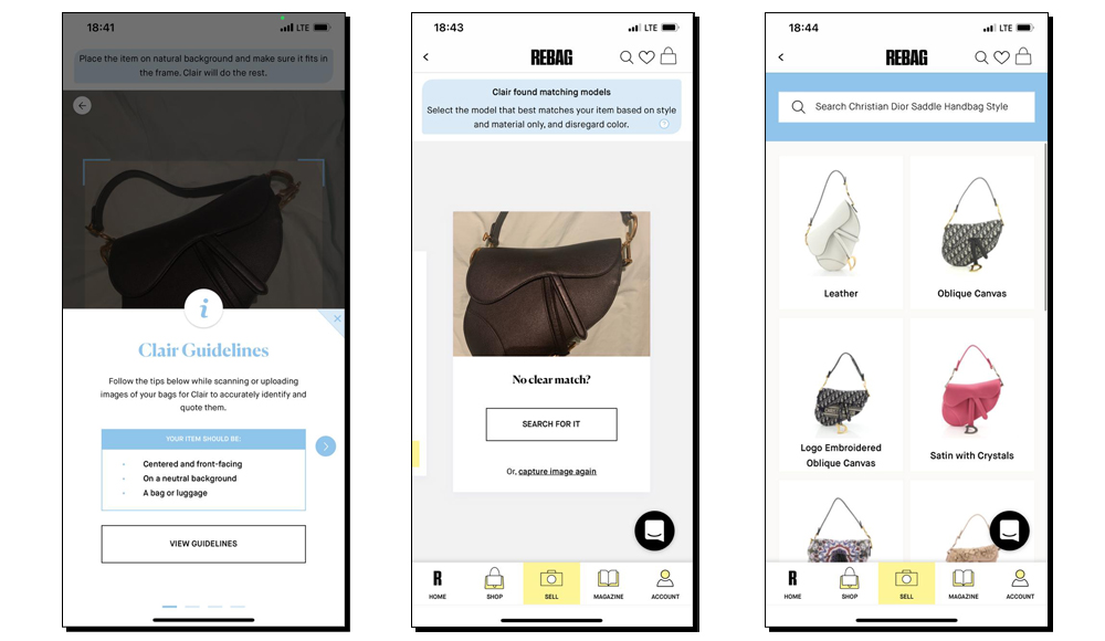 Сlair может по фото идентифицировать сумку, подтвердить ее оригинальность и подсказать актуальную цену. Компания разрабатывала технологию шесть лет, тестировала ее на миллионе фотографий и, конечно, в первую очередь внедрила в собственное resale-приложение Rebag. Для пользователя это значит, что он может значительно упростить процесс перепродажи своего аксессуара, через секунду получив все данные и рекомендованную цену. Сейчас алгоритм работает с 50 брендами. Ранее процесс проверки вещи и коммуникация с менеджерами занимал несколько дней.