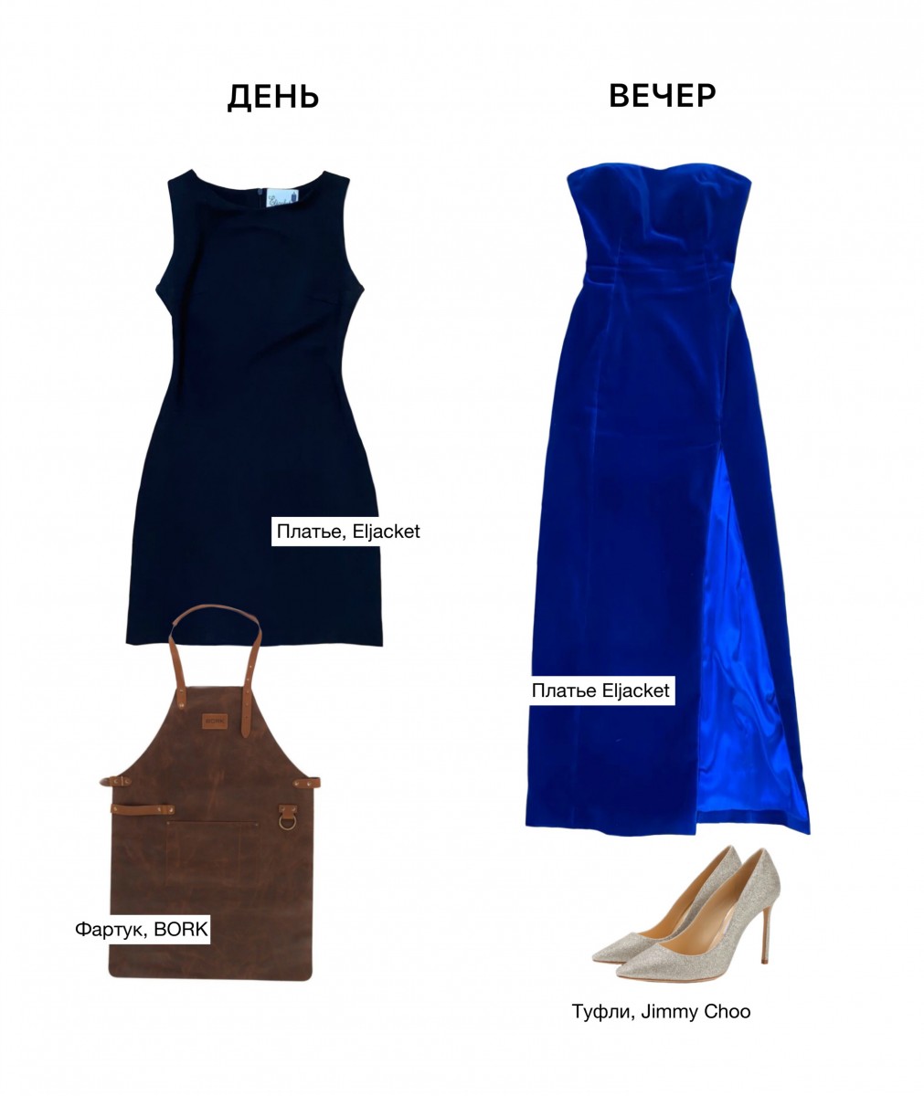 Нарезая салаты и накрывая стол, нужно чувствовать себя комфортно, но празднично. Выберите лаконичное платье из эластичного материала, чтобы свободно двигаться. И порадуйте себя красивым фартуком — мелочь, которая сохранит свежесть платья и поднимет настроение.