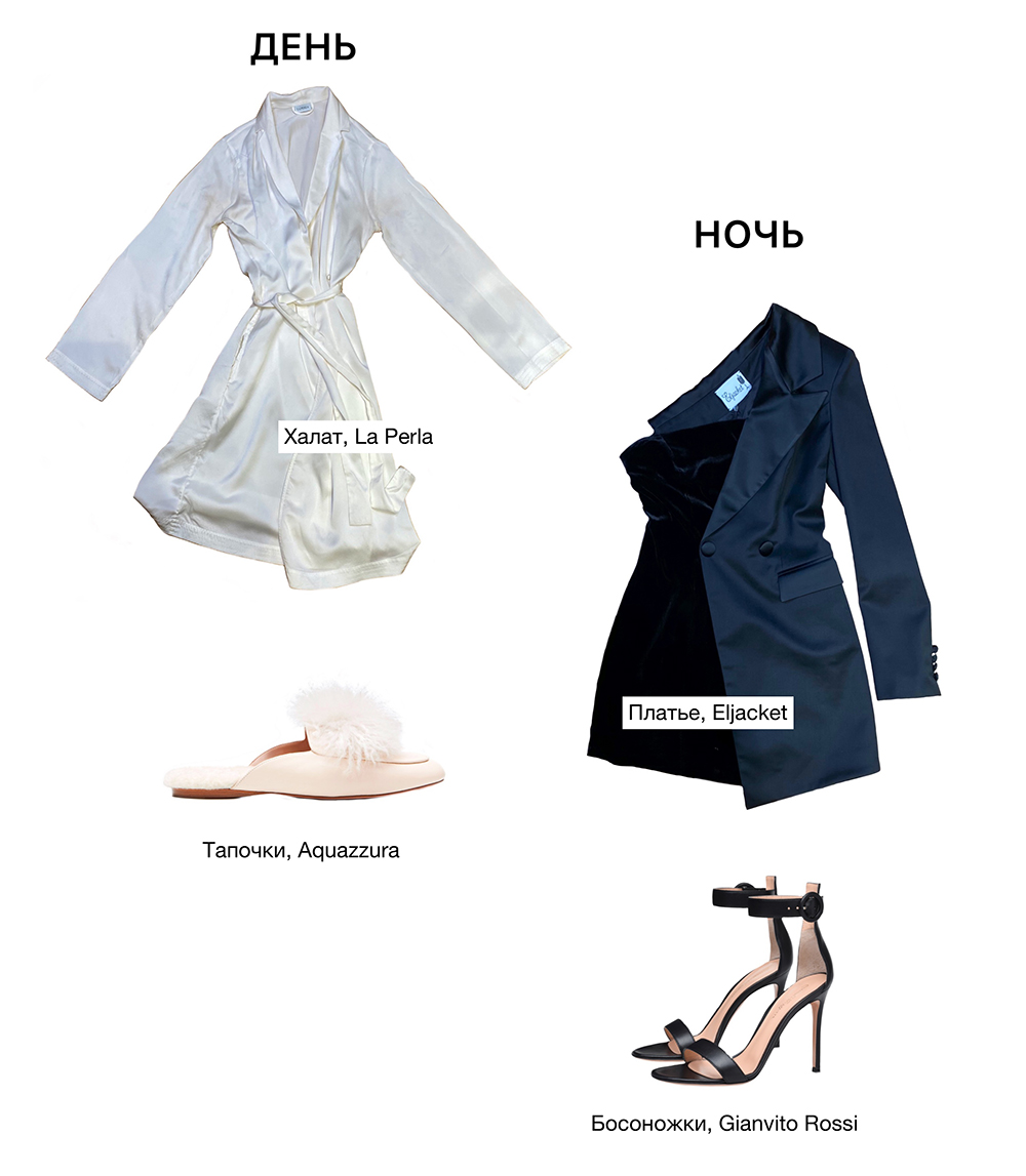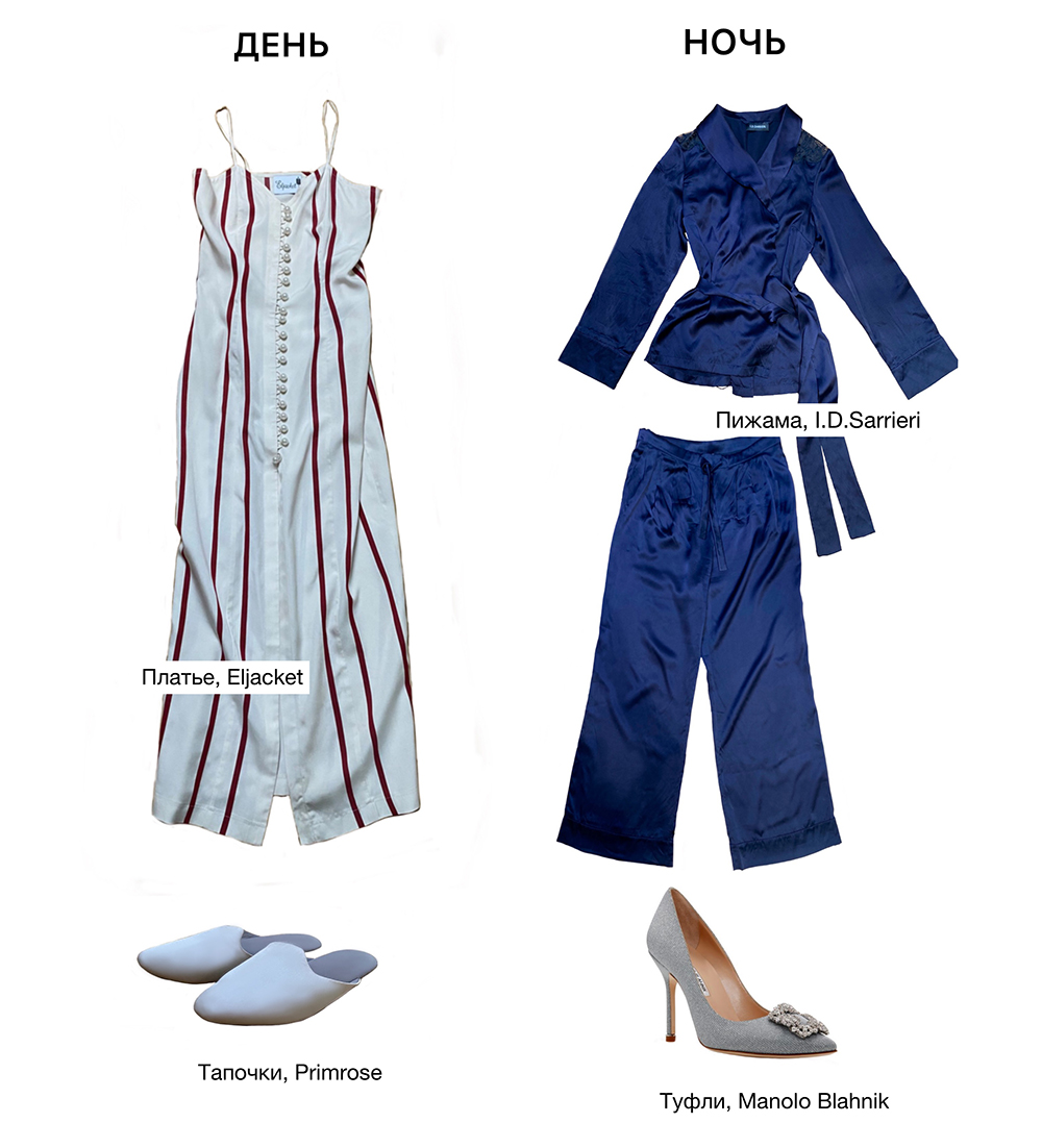 Атласная пижама глубокого оттенка будет красиво смотреться на экранах. В тон ей подберите тапочки. Макияж сделайте ярче обычного — камера его «съедает».