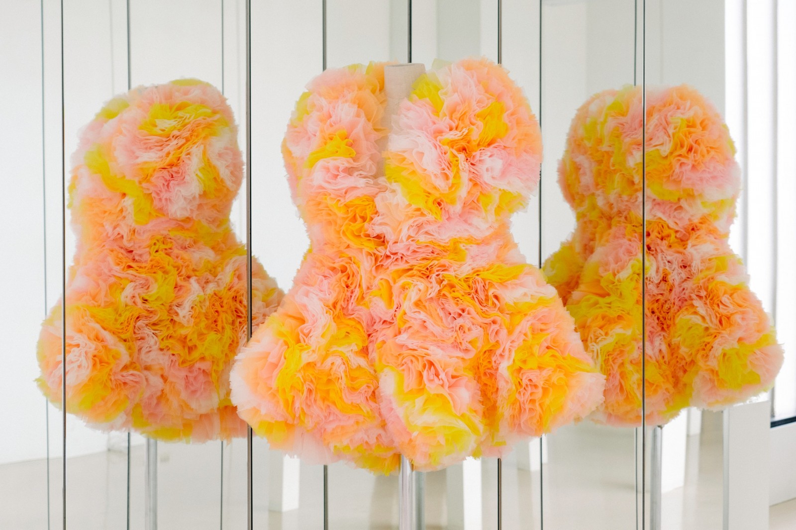 Японский дизайнер, победитель премии LVMH Prize Томо Коидзуми придумал капсулу для знаменитого итальянского бренда. В нее вошли 11 воздушных мини-платьев из тысячи слоев фатина и органзы «съедобных» оттенков: мандаринового, лимонного, персикового.