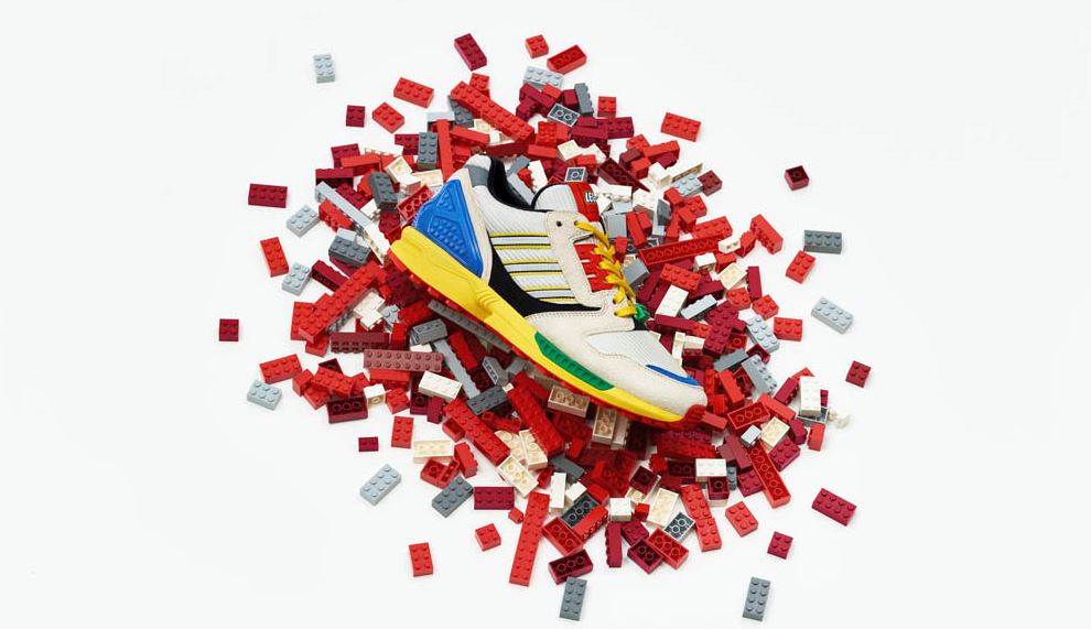 Компании выпустили модель кроссовок ZX 8000. Она привлекла внимание еще на этапе рекламы: коробка из-под обуви для нее была целиком сделана из деталей Lego. Правда, в продажу обувь поступила все же в упаковке из бумаги.