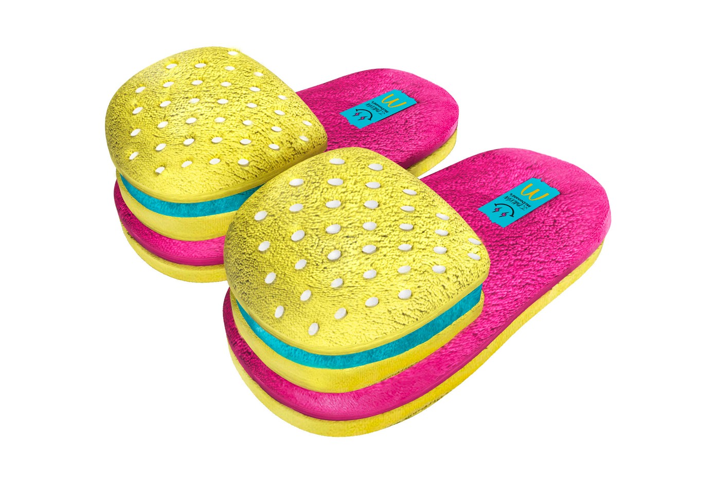 Забавная коллекция регги-исполнителя и сети ресторанов быстрого питания доступна каждому: там есть как вещи за 300 рублей, так и за 14000. Толстовки, шляпы-ведра, свитера, фартуки, одеяла, часы, пледы, очки, футболки, кепки — везде присутствует узнаваемая золотая арка. Но главными хитами коллаба стали тапочки в виде бургера.