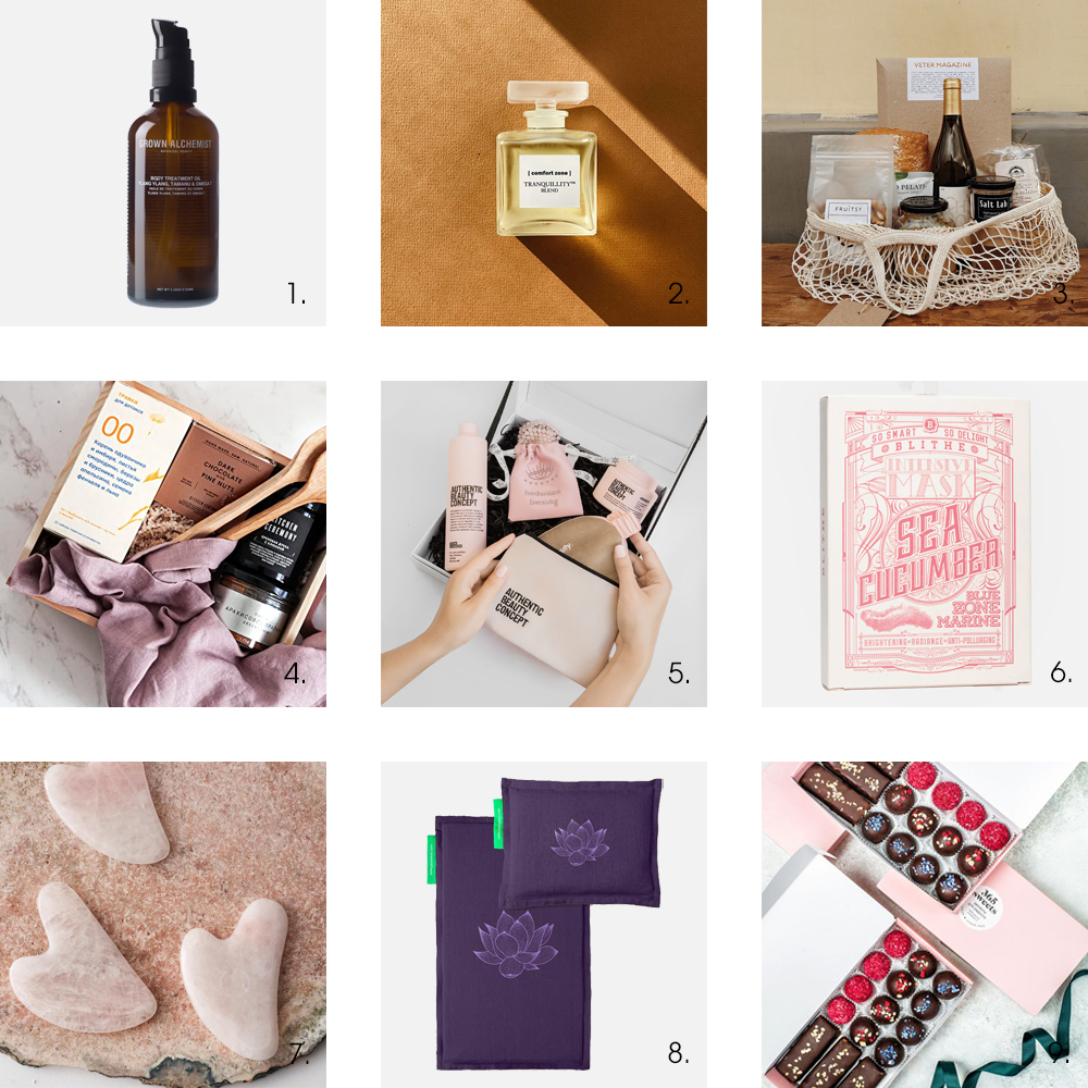Выбирайте для близких то, что сами они могут не решиться купить, потому что всегда найдется что-то поважнее. Например, масло для тела Grown Alchemist с ароматом иланг-иланга (1), смесь аромамасел от Comfort Zone в красивейшем стеклянном флаконе (2), набор тканевых масок Blithe (6, сейчас на скидке в «Золотом яблоке») или целый бьюти-набор, который собрали самые настоящие Hedonism girls (5).