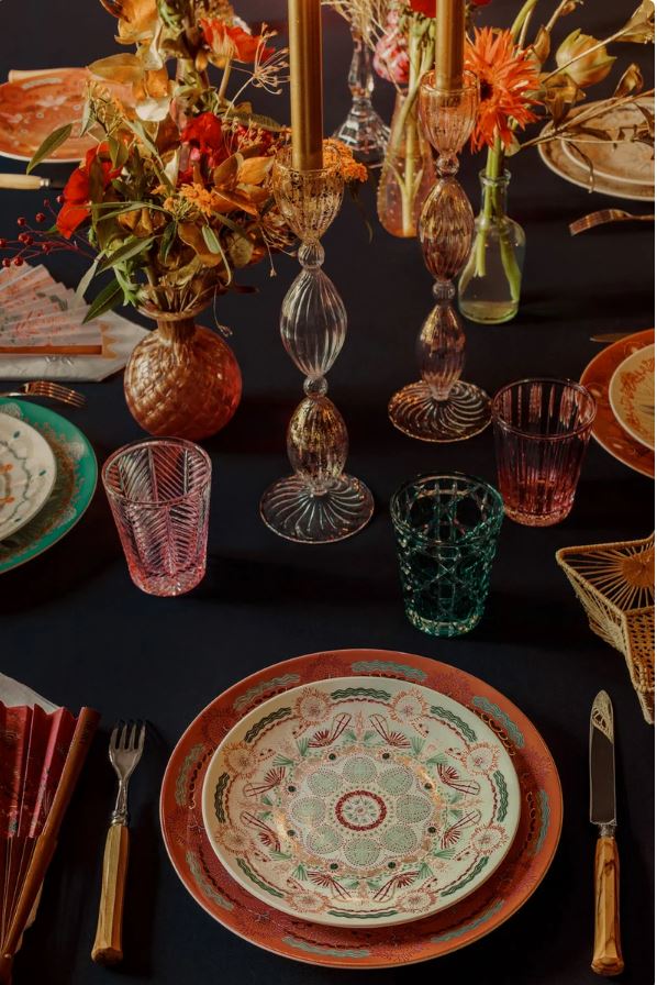• Используйте цветные хрустальные бокалы, благодаря гирляндам и свечам они будут красиво бликовать на свету и создавать праздничное настроение.