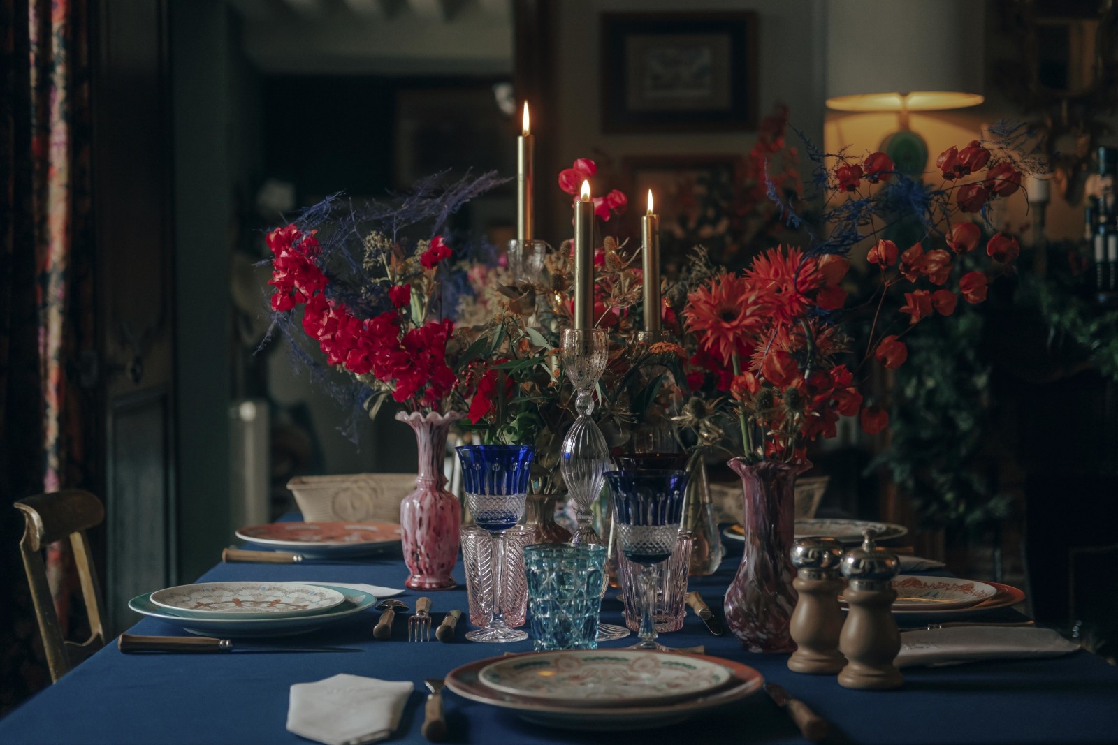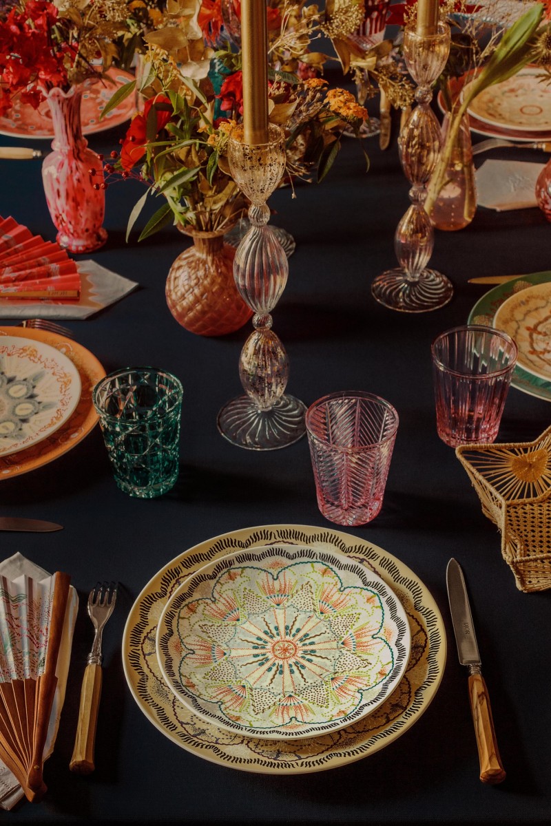 • Практически в каждой подборке Pinterest и Instagram советуют использовать для сервировки ветки ели, омелы и шишки. Корделия рекомендует пойти иным путем и отдать предпочтение живым цветам. Если их оттенок будет перекликаться с тоном посуды, новогодний стол заиграет по-новому. Сама она выбрала фарфоровый сервиз из серии Luminarie и букеты из своего сада, на которые она нанесла краску.