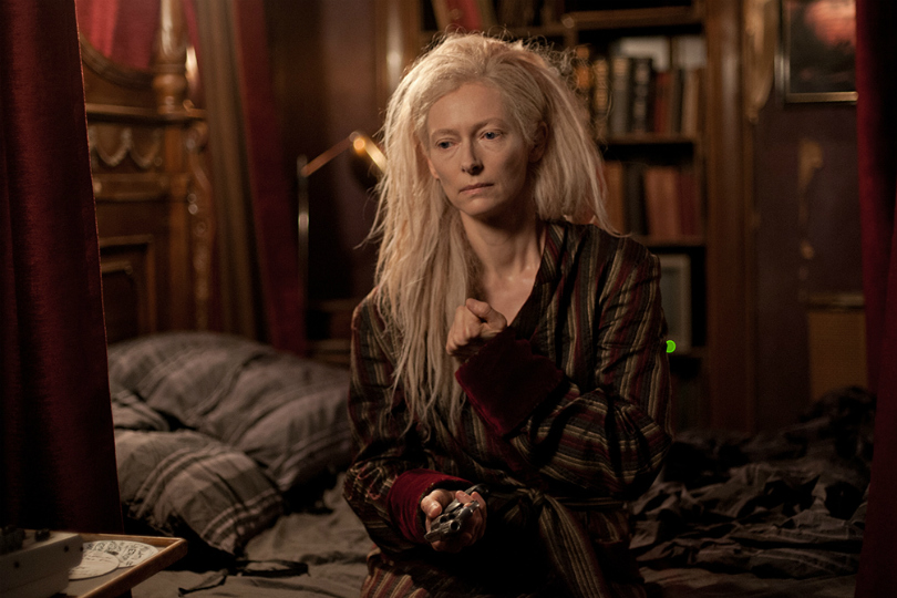 Дайте Тильде пару фальшивых вампирских зубов, балахоны и она оживет в темноте, но сохранит свою непринужденную элегантность. Неважно, что на ней надето или кого она играет, актриса полностью теряет себя в этой роли.