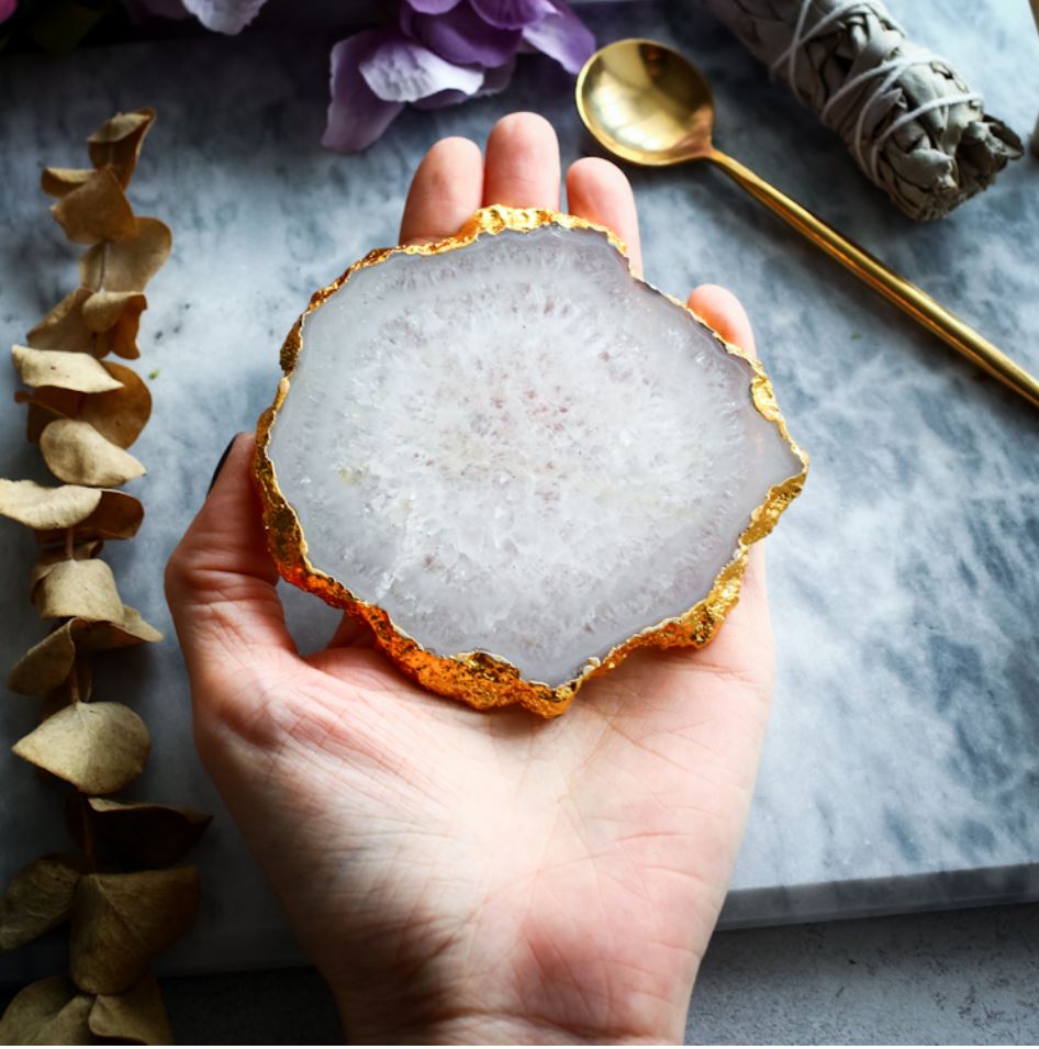 У Lina Delika можно найти множество вариантов. Например, подставку из горного хрусталя с окантовкой из металлов с содержанием 24-каратного золота и монограммой из латуни. Минерал считается «любимцем ясновидцев», так как помогает раскрыться внутренним чакрам и уловить частоты вибраций человека. А если вы не верите в подобное, тогда просто факт: на свету диоксид кремния переливается и блестит, идеально подходит для раскладок в инстаграме.