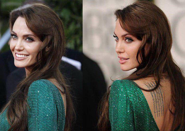 Чаще всего Анджелина отдает предпочтение макияжу с акцентом на губы и черному цвету в одежде. На церемонии вручения «Оскар» актриса решила изменить принципам, отдав предпочтение мерцающему платью от Elie Saab, прямым волосам и помаде телесного оттенка. Получилось отлично!